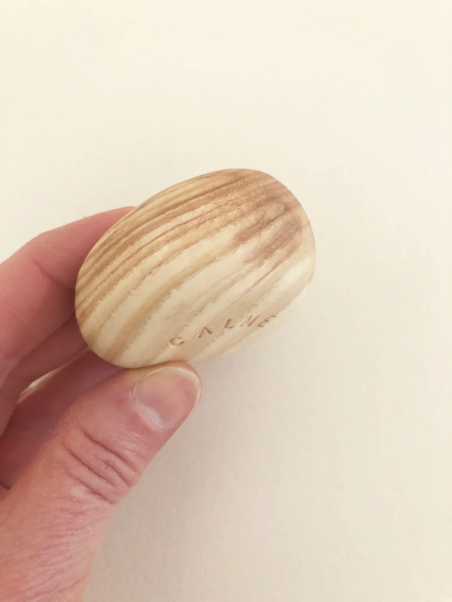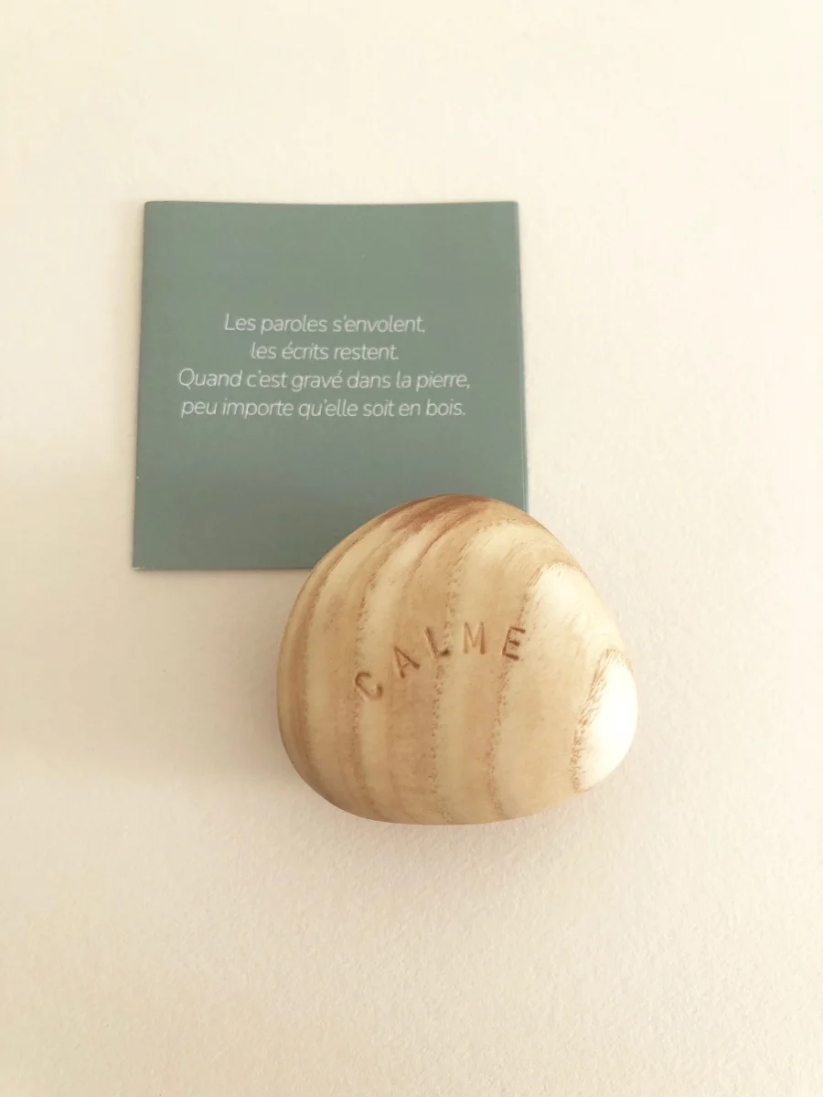 Votre galet vous sera livré dans un petit sac en coton, accompagné de son certificat indiquant l’essence de bois et ma démarche.